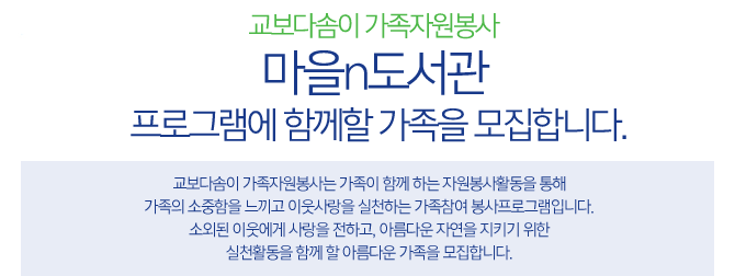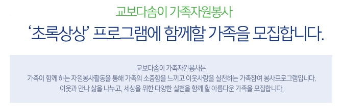 | 5¿ù ±³º¸´Ù¼ØÀÌ °¡Á·ÀÚ¿øºÀ»ç Âü°¡°¡Á·À» ¸ðÁýÇÕ´Ï´Ù. |